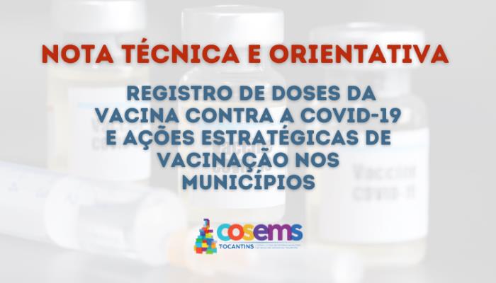 O Conselho das Secretarias Municipais de Saúde do Tocantins (COSEMS-TO) emitiu nesta sexta-feira, 12, uma Nota Técnica e de Orientação às Secretarias Municipais de Saúde do Estado do Tocantins. No texto foi abordado a importância do registro de doses da vacina contra a COVID-19 e ações estratégicas de vacinação nos municípios.