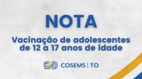 Nota: vacinação de adolescentes de 12 a 17 anos de idade